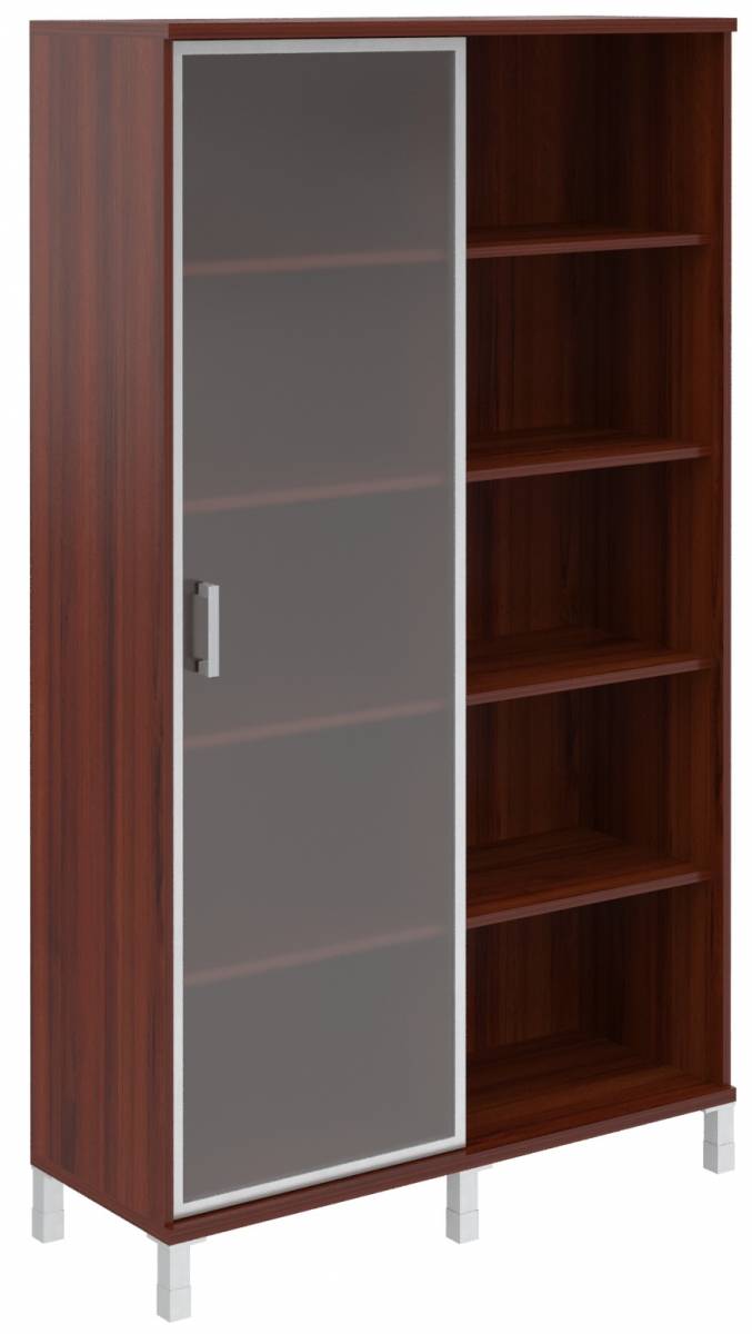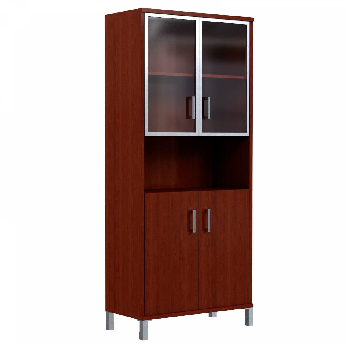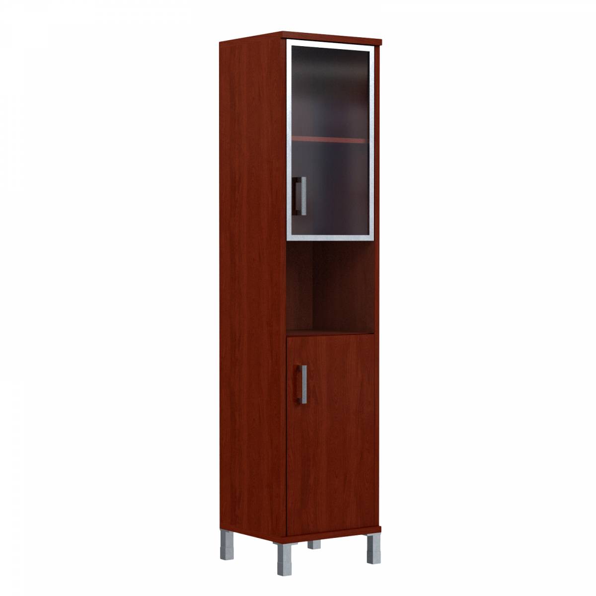 Шкаф высокий с малыми стеклянными дверьми в AL-рамке и глухими B 430.9 Бургунди 900х450х2054